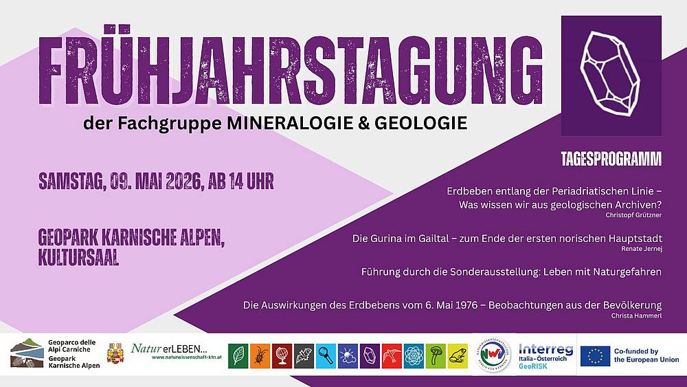 • 9. Mai: Vorstellung des neuen Geotrailwanderführers Karnische Alpen im Rahmen der Frühjahrstagung des Naturwissenschaftlichen Vereins in Dellach/Gail.