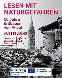 Am 6. Mai jährt sich das schwere Beben von Friaul zum 50. Mal. Aus diesem Grund zeigt der Geopark die Sonderausstellung "Wenn die Erde bebt - 50 Jahre Erdbeben von Friaul und weitere Naturgefahren". Die Ausstellung ermöglicht das grenzüberschreitende Italien-Österreich Interregprojekt "GeoRISK".